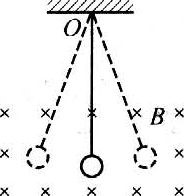 50.如图所示,用绝缘细线悬挂着的带正电小球在匀强磁场中作简谐运动,则( )。