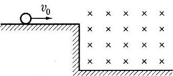 51.如图所示,一个带正电的小球沿光滑的水平绝缘桌面向右运动,速度的方向垂直于一个水平方向的匀强磁场,小球飞离桌子边缘落到地板上。设其飞行时间为t1,水平射程为s1,落地速率为v1。撤去磁场,其余条件不变时,小球飞行时间为t2,水平射程为s2,落地速率为v2,则( )。