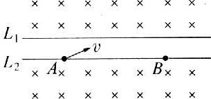53.如图所示,L1和L2为两平行的虚线,L1上方和L2下方都是垂直纸面向里的磁感应强度相同的匀强磁场,A、B两点都在L2上。带电粒子从A点以初速v斜向上与L2成30°角射出,经过偏转后正好过B点,经过B点时速度方向也斜向上,不计重力影响,下列说法中正确的是( )。