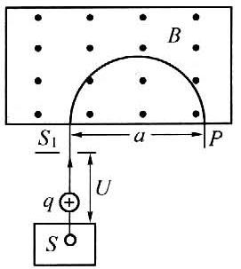 (3)试证明这种离子的质量为m=\(\frac{{q{B^2}{a^2}}}{{8U}}\)。