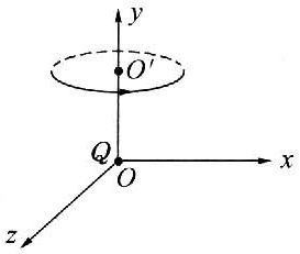 58.在如图所示的直角坐标系中,坐标原点O处固定有正点电荷,另有平行于y轴的匀强磁场。一个质量为m、带电量为+q的微粒,恰能以y轴上O′点(0,a,0)为圆心作匀速圆周运动,其轨迹平面与xOz平面平行,角速度为ω,旋转方向如图中箭头所示。试求匀强磁场的磁感应强度的大小和方向。
