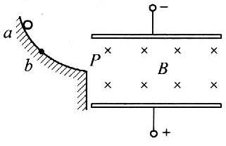 61.如图所示,带电平行板中匀强磁场方向水平垂直纸面向里,某带电小球从光滑绝缘轨道上的a点自由滑下,经过轨道端点P进入板间后恰能沿水平作直线运动。现使小球从较低的b点开始下滑,经P点进入板间,在板间的运动过程中( )。