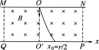 66.1998年6月2日,我国科学家研制的阿尔法磁谱仪由“发现号”航天飞机搭载升空,用于探测宇宙中是否有反物质和暗物质。所谓反物质的原子是由带负电的反原子核和核外正电子组成。与11H、10n、0-1e等物质相对应的1-1H、10n﹑01e等称为反粒子。由于反粒子具有和相应粒子完全相同的质量及相反的电荷,可以用下述方法探测:如图所示,为简化,设图中各粒子或反粒子沿垂直于匀强磁场B的方向(OO′)进入截面为MNPQ的磁谱仪时速度相同,且氢原子核(11H)在O′x轴上偏移的位移x0恰为其半径r的一半,试预言反氢核(11H)和反氦核(42He)的轨迹及其在O′x轴上偏转的位移x1和x2。
