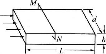 67.如图所示,矩形管长L、宽为d、高为h,上下两平面是绝缘体,相距为d的两侧面是导体,并用粗导线MN相连。令电阻率为ρ的水银充满管口,源源不断地流过该矩形管。已知水银匀速通过管子的速度与管子两端的压强成正比,且当管两端压强差为p时,水银的流速为v0。今在矩形管所在的区域加一与管子的上下平面垂直的匀强磁场,磁场的磁感应强度为B(图中未画出)。待稳定后,求水银在管中的流速。