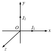 22.在真空的直角坐标系中,有两条互相绝缘且垂直的长直导线分别与Ox、Oy轴重合,电流方向如图所示,其中I1=2.0 A,I2=3.0 A,求: