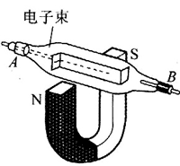 46.如图所示,阴极射线管(A为其阴极)放在蹄形磁铁的N、S两极间,射管的A、B两极分别接在直流高压电源的________极和________极。此时,荧光屏上的电子束运动轨迹________偏转(选填“向上”、“向下”或“不”)。