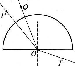 45.如图所示,两束不同的单色光P和Q以适当的角度射向半圆形的玻璃砖,然后均由O点沿OF方向射出,则下列说法中正确的是( )