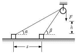 35.如图,细线一端跨过定滑轮与水平地面上的物体相连,另一端在大小为F的恒力作用下移动距离h,物体沿地面移动的距离为s,绳与水平地面的夹角由α变为β。在此过程中,该恒力做功为( )