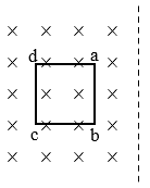 39.如图在竖直向下的半无界匀强磁场中,闭合矩形导线框abcd置于光滑水平面上,其ab边与磁场边界平行。导线框在图示位置获得一水平向右的初速度开始运动到cd边离开磁场的过程中: