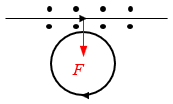 根据右手螺旋定则,环形线圈在导线处产生的磁场方向为直纸面向外,在根据左手定则,直导线在此磁场中受到的磁场力方向为向下。此题也可以使用“同向电流相互”的推论解决。