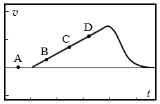 38.在“用DIS测量加速度”实验中,小车沿倾斜轨道下滑,获得的v-t图像如右图所示;在图上选取______(选填“A”、“B”或“C”)与D两点,测得小车加速度大小a1。增加轨道倾角,重复实验,测得小车加速度大小为a2,则a1______a2(选填“>”、“=”或“<”)。