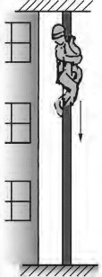 一质量m=60 kg的学生在听到火警信号后,从高h=8 m的楼上窗口戴上专用手套沿逃生绳下滑。学生握绳的力不同会造成手套与逃生绳之间的滑动摩擦力不同。假使该学生先匀加速下滑后,双手更用力握紧绳,使自己做匀速运动到达地面,下滑3 s到达地面时的速度为4 m/s,问: