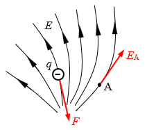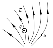 22.一电场的电场线分布如图所示,电场中有一带负电的检验电荷q。画出:①A点的电场强度方向;②q受到的电场力方向。