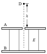 24.如图,水平放置的金属薄板A、B间有匀强电场,电场强度大小E=2.0×106N/C。A板上有一小孔,D为小孔正上方h=32mm处的一点。一带负电的油滴在重力G=3.2×10-12N作用下,由D点开始做自由落体运动。当油滴进入电场后,恰好做匀速直线运动。求:(g取10m/s2)