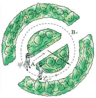 5.如图所示的圆形大花坛,其道路半径为r,甲、乙两人均从A抵达B,甲沿直径走,乙绕半圆弧走,他们的位移和路程各是多少?