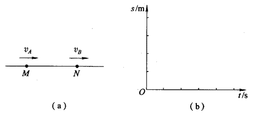 95.根据图(a)中2个运动质点A、B的s-t图,在图(b)中画出相应的v-t图。