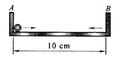 如图所示,在一个内壁宽度为10 cm的固定钢盒中,有一个小钢珠不停地来回做直线运动。设碰壁的时间极短而不计,碰壁后速度大小不变,且运动过程中钢珠速度的大小是不变的(摩擦不计)。钢珠从A壁出发,每秒碰壁5次,试画出1s内它的s-t图。