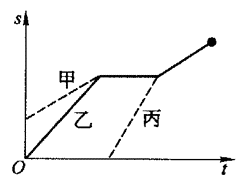 23.看图像讲故事,如图所示是甲、乙、丙三者的s-t图,他们有共同的终点,根据图像自编一个故事,使故事能符合图像中各条图线所表示的运动规律。