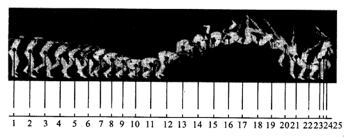 85.有一种“自动”照相机,它的进光孔径(在照相术语中叫做光圈)随被拍摄物体的亮度自动调节,而曝光时间(在照相术语中叫做快门速度)是固定不变的,为估测该照相机的曝光时间,实验者从贴有瓷砖的墙前某处自由释放一个小铁球,拍摄小铁球在空中的照片如图所示。由于小铁球的运动,它在照片上留下了一条径迹。已知每块瓷砖的长度为25 cm,拍摄到的小铁球位置A距小铁球释放点约为2 m。试估算这个照相机的曝光时间。