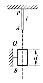 75.如图所示,一段长为l=3 m的棒,上端悬挂在天花板上P点,棒的正下方固定着一个高为d=0.75 m的中空圆筒Q。棒被释放后自由落下,它通过圆筒所需的时间为t=0.5 s。求圆筒上缘离天花板的距离。(g取10 m/s2 )