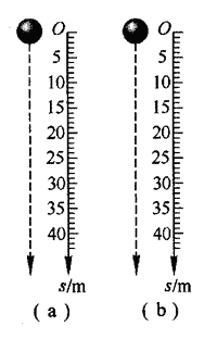 81.设两个小球分别同时从图中两个坐标轴的O点处落下,图(a)中的小球做匀速直线运动,速度为v=10 m/s;图(b)中的小球做初速度为零的匀加速直线运动,加速度为a=10 m/s2。