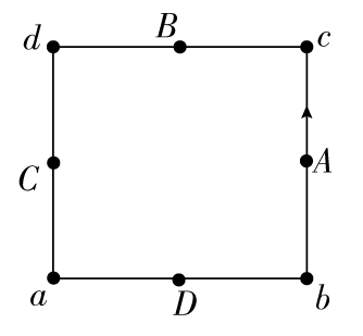 由题意质点每1 s匀速移动1 m可知,质点运动的速率为1 m/s,即在每一时刻的瞬时速率均为1 m/s,每段时间内的平均速率也均为1 m/s。在2 s内质点通过的路程为2 m,由A运动到cd边的中点B,在第2 s末瞬时速度大小为1 m/s,方向由B指向d,瞬时速率为1 m/s,前2 s 内的位移大小为x1=|AB|=\(\sqrt {{\rm{A}}{{\rm{c}}^2} + {\rm{B}}{{\rm{c}}^2}} \)=\(\sqrt 2 \) m,平均速度\({\bar v_1}\)=\(\frac{{{x_1}}}{{{t_1}}}\)=\(\frac{{\sqrt 2 }}{2}\) m/s,方向由A指向B,平均速率为1 m/s。前4 s内质点通过的路程为4 m,在第4 s 末到达C点,则前4 s内位移大小为x2=|AC|=2 m,方向由A指向C,平均速度为\({\bar v_2}\)=\(\frac{{{x_2}}}{{{t_2}}}\)=0.5 m/s,方向由A指向C,平均速率仍为1 m/s。