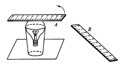 把一只白炽灯泡放在玻璃杯口,使它保持平稳,如图所示;用干净的手帕摩擦有机玻璃(或塑料)直尺A,使其带电,再将直尺A平稳地放在玻璃灯泡上。用同样的方法使直尺B带电,并接近直尺A,观察直尺A的转动情况。如果两根直尺的材料相同,可以看到直尺A被排斥,如果它们的材料不同,则它们可能互相吸引。改变两尺的距离,还可以体会它们相互作用强弱的变化,根据这个实验,你能作出什么结论?