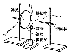 34.静电除尘是种被广泛应用的除尘手段。如图所示是一个用来研究静电除尘的实验装置,铝板和手摇起电机的正极相连,缝被针和手摇起电机的负极连接,在铝板和缝被针中间放入点燃的蚊香。转动手摇起电机,蚊香上的烟会被电极吸附。一旦停止转动手摇起电机,蚊香的烟又会袅袅上升,请解释这个现象。