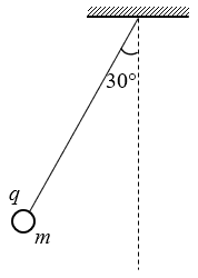43.一个带电小球所带电荷量为-4.0×10-8 C,质量为2.0×10-3 kg,悬挂在一根绝缘细线上,小球放入电场后悬线偏离竖直方向30°,如图所示。若小球所在处的电场强度沿水平方向。