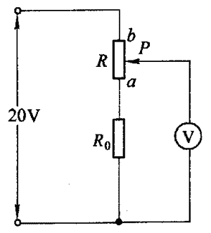 20.在如图所示电路中,固定电阻 R0 的阻值为 2000 Ω,滑动变阻器的滑动片 P 由 a 向 b 滑动时,电压表的示数的变化范围是 8~20 V,则滑动变阻器 R 的阻值变化的范围是_____。