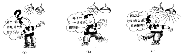28.三幅漫画如图(a)、(b)、(c)所示,生动地描述了一位学生的一次经历。针对这三幅漫画,请你用已学过的物理知识编一个物理问题,并写出问题的解答。