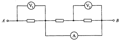59.如图所示,三个8 Ω的电阻串联后与电表相连,将A、B两端接入8 V的电压,则三个表的示数为多少?