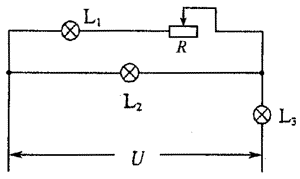 61.如图所示,电路中电源电压U恒定,在滑动变阻器R的阻值逐渐减少的过程中,逐渐变暗的灯泡是( )。