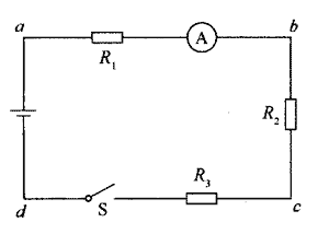 64.如图所示电路中,当闭合开关S后,发现电流表无示数,在不拆开电路的情况下,用电压表测量各点间的电压来判断故障所在,若测得各点间的电压为Uab=Ubc=0,Uad=Ucd≠0,则故障可能是( )。