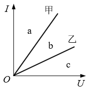 5.甲、乙两电阻的I-U关系如图所示,把它们串联后的,I-U关系图线一定在图中( )。