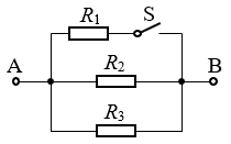 60.电阻R1、R2和R3连接成如图所示电路,已知A、B间电压保持不变,R3=100 Ω,流过电阻R3的电流为2 A,当电键S断开时,电路总功率为600 W;当电键S闭合时,电路总功率为1200 W,求电阻R1和R2的阻值。