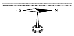 6.图中的直导线通电时,观察到导线下面的小磁针的N极转向读者,画出直导线中的电流方向。