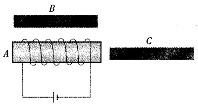 9.图中的A、B、C是放在通电螺线管磁场中不同位置的三块软铁,试标出它们被磁化后的磁极极性。