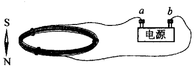 48.如图所示是一种转子和定子都有线圈的电动机原理图(换向器未画出),在图示状态,线框转动方向如图中箭头方向。试说明a、b两端,哪一端是电源的正极?哪一端是负极?(在线圈中画出电流方向和线框的受力方向)