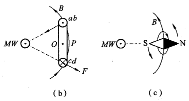 (1)描绘出一条磁感线,根据左手定则确定ab边的受力方向是指向MW,同理,cd边受力背离MW。简单地说,同方向电流相互靠近,反方向电流相互远离。