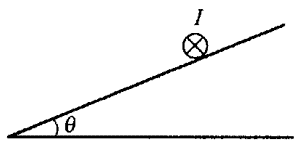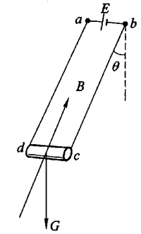 61.如图所示,在匀强磁场区域内有一个光滑斜面,倾角为θ。在斜面上水平放置一根长为l、质量为m的导线中,通以如图所示方向的电流,通电导线恰好静止。则关于该匀强磁场的磁感应强度B的几种说法中,不可能的是( )。
