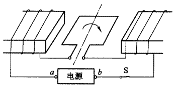 无论a、b哪端接电源正极,线框总是按图中箭头方向转动,也就是说它是一种单一转向的电动机
