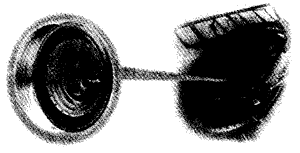 制作时先将漆包线在泡沫塑料块上绕成线圈,两端留出部分作为转轴。然后刮去半根轴上的漆(如左上图)。最后用橡筋将金属片固定在电池两极上,中央装上磁铁,再装上线圈。用手推转一下线圈就会不断地转动。