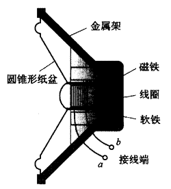 65.如图所示,在扬声器的内部结构图中,接线端a、b加有与声音频率相同的电压。你能说明它的工作原理吗?