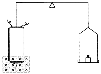 66.如图所示是一个特制的天平,它的左边是一个置于磁场中的矩形线框,线框的宽度为2 cm,共有20匝,右边有一个盛砝码的盘,线框未通电时调节天平平衡。当线框中通以如图所示方向、大小为1.5 A电流时,右盘中要增加10 g砝码才能继续保持平衡,则线框所在处磁场的磁感应强度为多大?