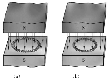 27.有一根首尾相接的长导线,将它缠绕到圆形磁体上的过程中,导线内会产生感应电流。这是什么原因?若按图所示的方向把导线绕到磁棒上,试分析感应电流的方向。