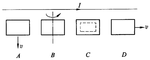 5.如图所示,在一通电的长直导线旁有大小相同的四个金属线框A、B、C、D。分析下列各种情况下,线框中有没有感应电流产生?