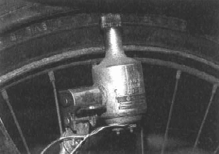 永磁铁随着驱动轮转动,穿过闭合线圈的磁通量发生变化,因而产生感应电流对车灯供电。