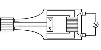 6.自行车发电机的结构如图所示,它有一块永久磁铁,置于绕有线圈的]形软铁芯内。当自行车轮转动时,通过摩擦带动磁铁转动。你能解释这个装置为什么可以对车灯供电的原理吗?