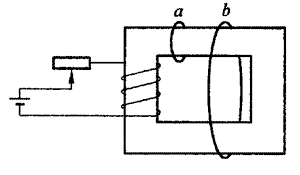 9.如图所示,在口字形铁芯上绕有一组线圈,与滑动变阻器、电源构成闭合电路。假定通电线圈产生磁场的磁感线全部集中在铁芯中,在滑动变阻器的滑动触头左、右滑动时,a、b两个闭合圆环中( )。
